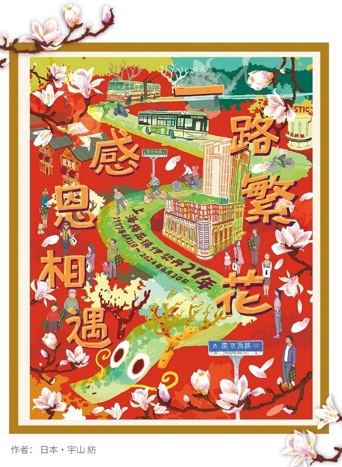 宇山纺名气越来越响。去年,进博会请她画城市展板。伊势丹闭店前,邀她手绘南京西路27年变迁,引来“老上海”排队打卡:“这就是我小时候的南京路!”