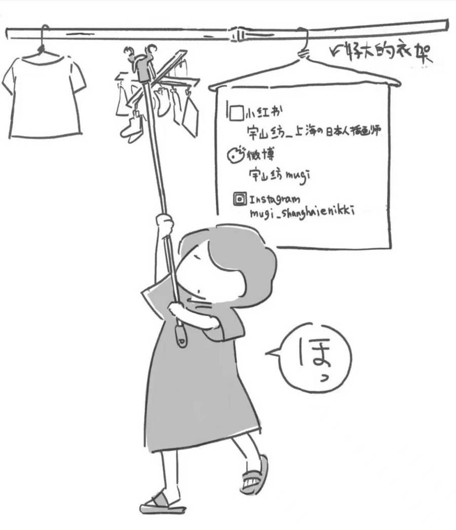住所条件有限,衣服洗了没地方晾,隔壁阿姨教她用“丫叉头”晾衣服,宇山纺练成了高手。